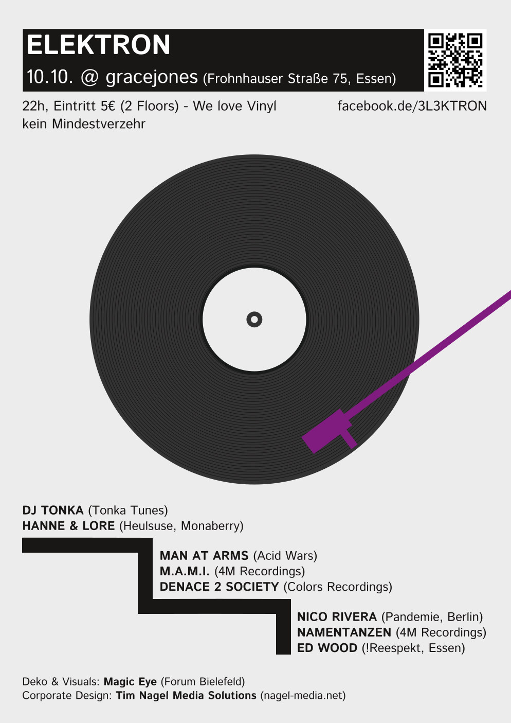 Für die Veranstalter der Party 3L3KTRON im Grace Jones in Essen gestalteten wir dieses Plakat zu Marketingzwecken.