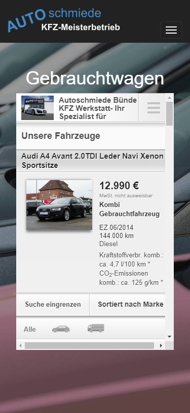 Für die Firma Autoschmiede Bünde entwarfen und programmierten wir diese responsive HTML5-Webseite.