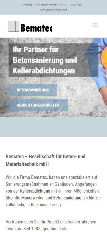 Diese WordPress-Webseite entstand im Auftrag der Firma Bematec – Beton- & Materialtechnik aus Melle.