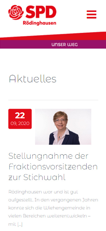 Im Umfeld der Kommunalwahl 2020 entwickelten wir eine frische Webseite für die SPD Rödinghausen.